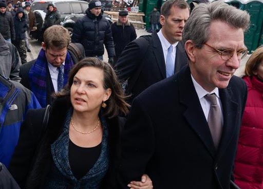 After being caught with their pants down actively conspiring to incite uprisings in Ukraine, Victoria Nuland apologized –NOT for conspiring to overthrow a democratically elected government, but for being rude to the European Union. This despite the fact that we can clearly hear them plotting to “midwife” the insurrection taking place in Kiev. Everything they discussed in the phone conversation has come to pass, including propping up Yatsenyuk into power. In a matter of weeks Victoria Nuland has come to represent the vulgar arrogance and imperial hubris so typical of the neo-Conservative government running the show today, but her involvement in manipulating Ukrainian affairs runs deeper still…