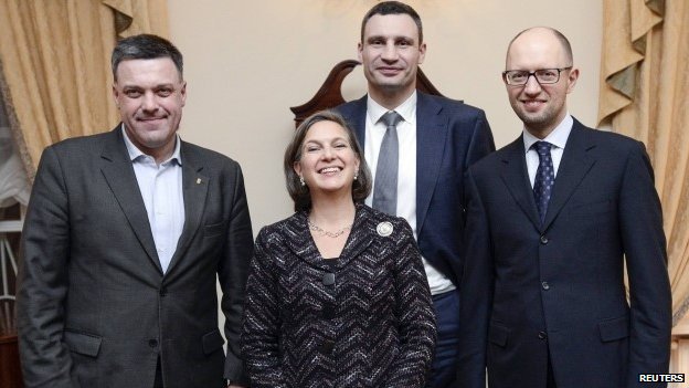 Nuland: [Breaks in] I think Yats is the guy who’s got the economic experience, the governing experience. He’s the… what he needs is Klitsch and Tyahnybok on the outside. He needs to be talking to them four times a week, you know. I just think Klitsch going in… he’s going to be at that level working for Yatsenyuk, it’s just not going to work.
