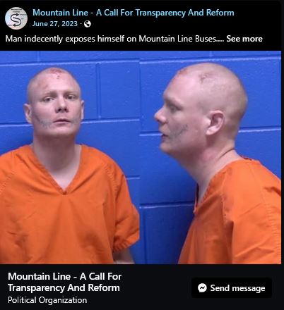 Norman says that while he sought to make the bus system better, his efforts were consistently met with resistance from company leadership. After he quit in 2023, Austin created a Facebook page to raise public awareness among Missoulians of the failures and dangers of Missoula’s “free” bus system. The page, Mountain Line, a Call For Transparency and Reform, has hundreds of followers and has succeeded in at least calling attention to problems that local newspapers and City leadership would rather pretend aren’t happening. Part of that ongoing campaign involved obtaining bus videos of unscrupulous behavior.
