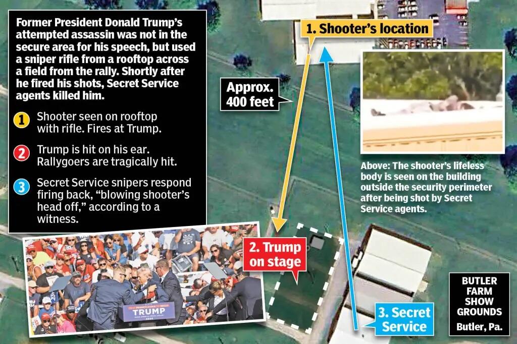 The AGR roof wasn’t only identified as a “well-known, high-priority vulnerability” the day prior, it also happened to be the Tactical Operations Center for the counter-sniper detail. We’re told that the shooter somehow infiltrated the highly guarded perimeter of the police tactical staging area and took aim at his target from only 150 meters away, in plain sight of both the Secret Service and rally-goers. According to the New York Post: