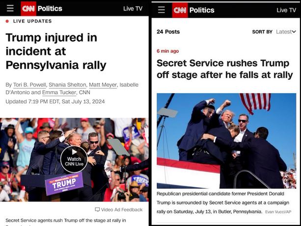 Adding to the suspicious circumstances is the fact that CNN doesn’t ever live-stream Trump rallies but for some reason decided to stream the one in Butler on July 13th. Had the bullets hit their mark, CNN would have almost definitely played the horrific footage on repeat for the rest of the day exactly like they replayed the collapse of the Twin Towers on September eleventh.