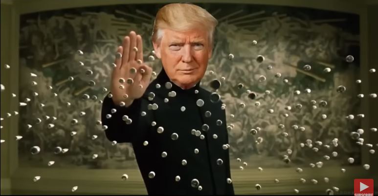 Trump’s bodyguards rushed the stage and dogpiled themselves onto Trump. Before they could whisk him away he demanded they wait so he could pump his fist in the air with blood streaming down his face and address to the crowd with his now infamous rallying cry, “Fight!” Fight! Fight!”