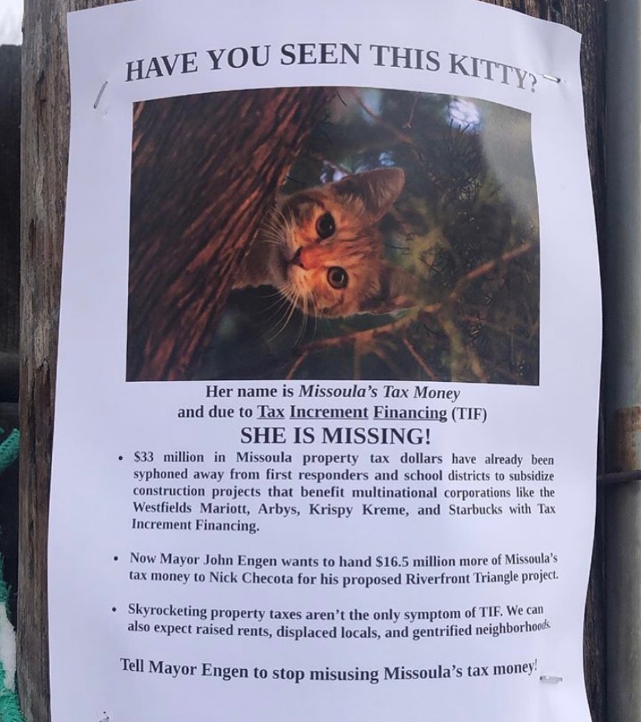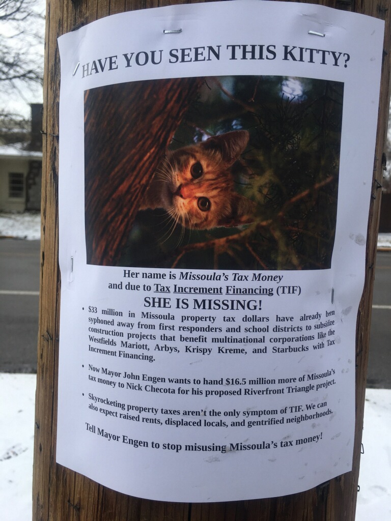 A few keen observers noticed a particularly egregious error in the Missoula Current’s coverage of the 24 February Council meeting. Missoula Current editor and reporter-in-chief Martin Kidston tacked a quick smear of Wardell and other anti-TIF activists onto the end of an article about the Council making a non-decision and sending a proposal for a River street warehouse back to committee.
